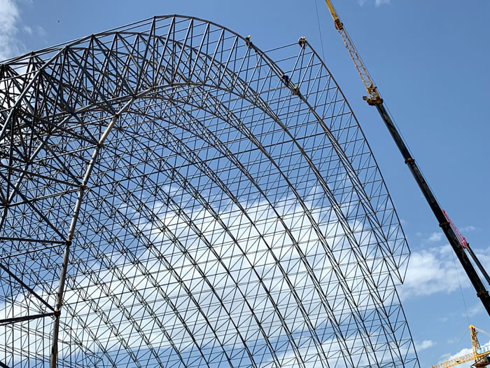 (2)网架加工前应对现场尺寸进行复测,确认无误后方可进行加工、安装;网架制作、运输、安装应遵守《空间网格结构技术规程》JGJ7-2010、《钢网架崇明螺栓球节点》JG/T 10-2009、《钢网架崇明螺栓球节点用高强度螺栓》 GB/T 16939-2016、《崇明钢结构崇明工程崇明施工规范》 GB50755-2012、《崇明钢结构崇明工程施工质量验收标准》 GB50205-2020。